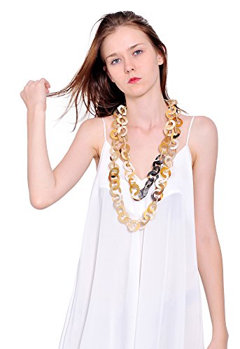 Very Long chain necklace designed by Marycrafts team, 100% handmade of buffalo horn, highly finished. Length approximately 68".