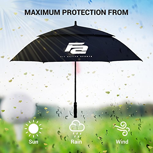 -. Feature : ULTIMATE PROTECTION - Large Umbrella 62" Easily Guards from the Sun, Rain, & Wind. / DURABILITY - Windproof Umbrella Built to withstand winds over 50mph. The Fit Active Sports compact umbrella is designed to resist almost any weather conditions. / NOT ONLY FOR GOLFING - Use for Shade, On rainy days, windy days, in your boat, on the beach, and more! It's a big Umbrella that can be used all year round. / PERFECT GIFT - Family & Friends love gifts especially ones that can be used for golfing or in their everyday life. / MONEY BACK GUARANTEE - If by any chance, you don't absolutely love your Fit Active Sports Golf Umbrella, just return it and we will replace it (Or refund if its a problem)