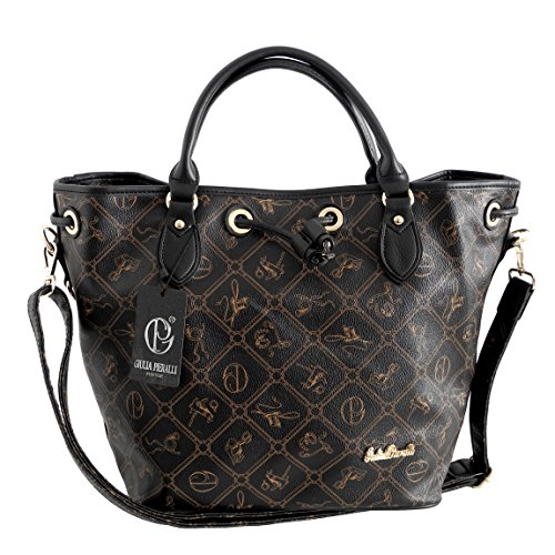 ZMOKA bietet Dir hier eine stylische XXL Designer Handtasche mit tollen Details und aus hochwertigem, pflegeleichtem und angenehm weichem Lederimitat angefertigt. Die Tasche ist mit dem typischen Giulia Pieralli Muster bedruckt! Auf der Vorderseite wurde das Designer Logo als edles Metall-Plättchen angebracht! Alle Metallapplikationen sind ebenfalls golfarben. Die Tasche wird mit einem Reißverschluss geschlossen! Sie wird mit einem längenverstellbaren und abnehmbaren Schultertragegurt geliefert. Somit kannst Du diese Tasche als Handtasche oder als Umhängetasche verwenden. Das Innenfutter wurde aus sehr edlem Satinstoff verarbeitet und ist mit der Prägung der Designerin verziert! Erhältlich ist diese Tasche in verschiedenen Farben! Die Maße der Tasche ca. in cm : 30 x 28 x 21 (BxHxT). Ausstattung: 1 sehr großes Hauptfach, dazu : 1 Fach fürs Smartphone + 2 kleine Fächer für Lippenstift oder ähnliches, weiterhin 2 kleine extra Fächer mit Reißverschluss. --- Finde weitere tolle Angebote wie z.B. Damenhandtaschen, Rucksäcke, Reisetaschen, Portemonnaies und vieles mehr in unserem AMAZON Shop !!! (bitte ZMOKA in die Suchzeile eingeben und dabei alle Kategorien auswählen)Feature
