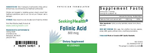 -. Feature : IMPORTANT: Folinic Acid Lozenge by Seeking Health is manufactured for and sold exclusively by Seeking Health. We DO NOT recommend purchasing this product from any supplier other than Seeking Health on Amazon.com. / Provides 800 mcg of folate as folinic acid calcium salt in an easy-to-deliver lozenge form. / Non-GMO. Free of the following common allergens: Milk, eggs, fish, shellfish, tree nuts, peanuts, wheat, gluten, artificial colors, flavors, and preservatives. / Physician-formulated.