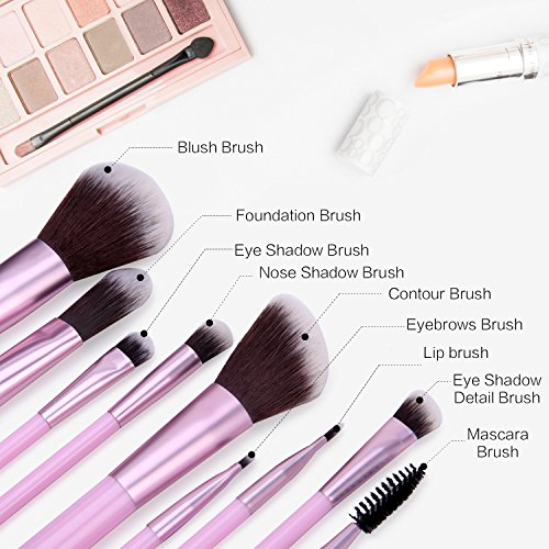 Lavender Makeup Brush Set, YEVITA 9pcs Synthetic Face Brush for Foundation Eye Makeup Concealer Mascara Contour Lip Professional Cosmetic Powder...