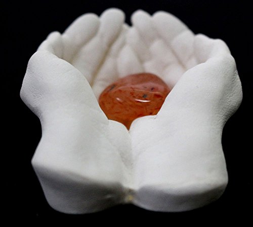 God’s Hands Natural Gypsum Figurine by Imprints Plus with Carnelian Healing Stone (2 Piece Set) 001