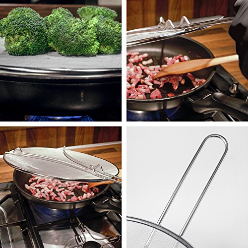 Spacious enough to cover any of your cooking pans and pots, this 13" FINE MESH screen makes a UNIVERSAL utensil that will save your drawers space.