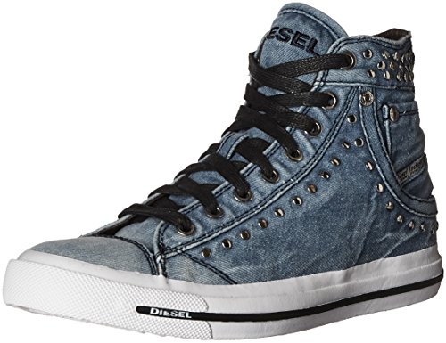 Product DescriptionDiesel heritage high top sneaker in treated denim and studding. also available in treated leather finish for a vintage effect.0
