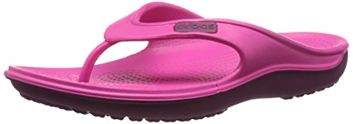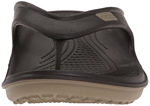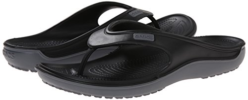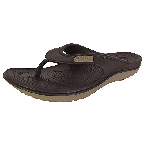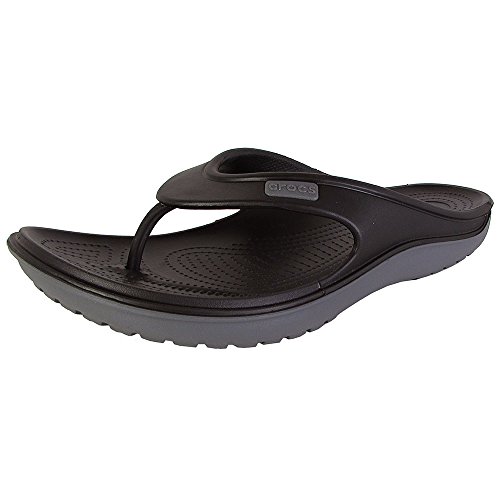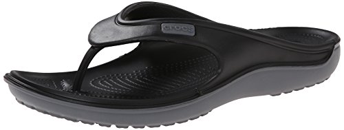 Product Description The Duet Wave Flip features Dual density CrosliteTM material that offers softer material underfoot and a more durable outsole. Dual injection design allows for a different color upper and outsole. The angled TPU toe post provides a more secure fit. 0