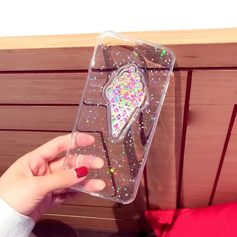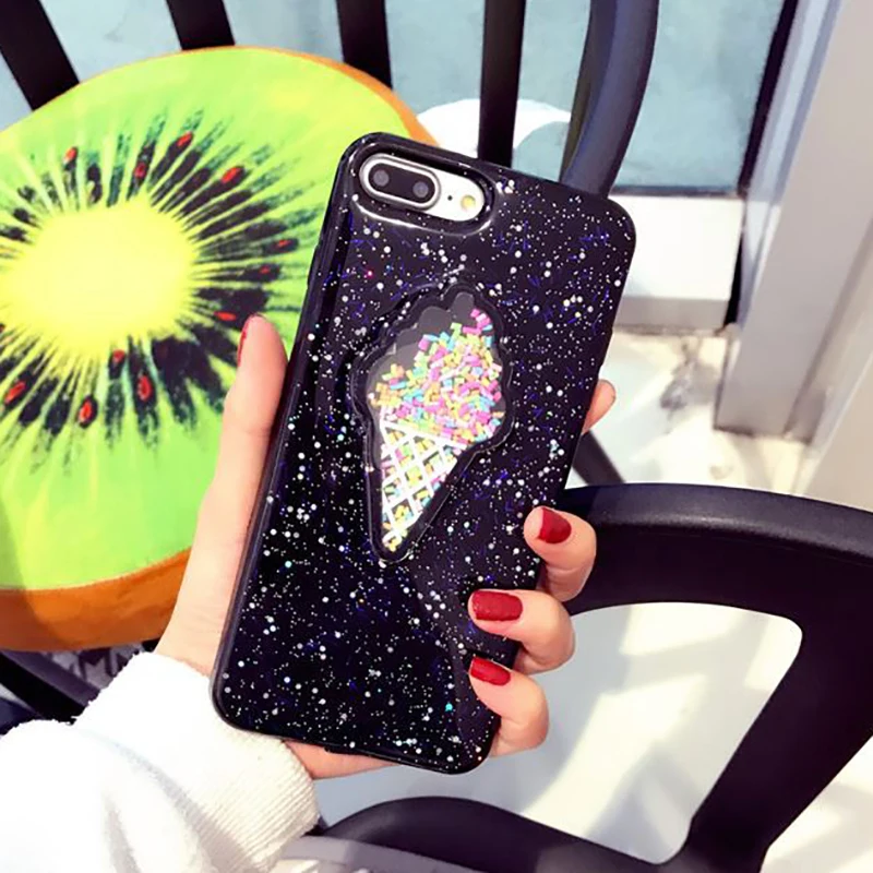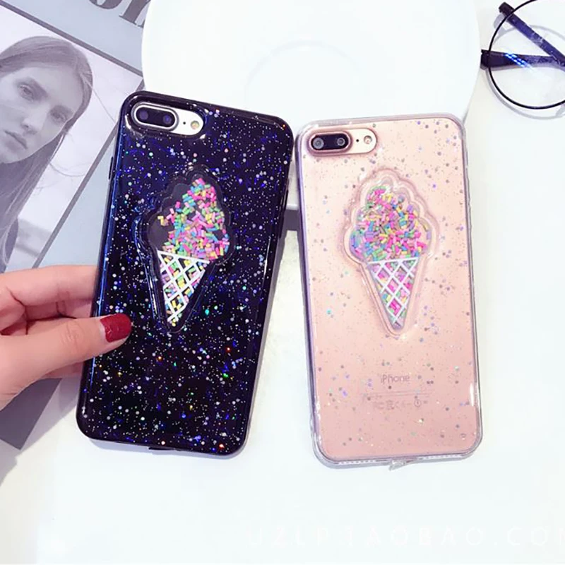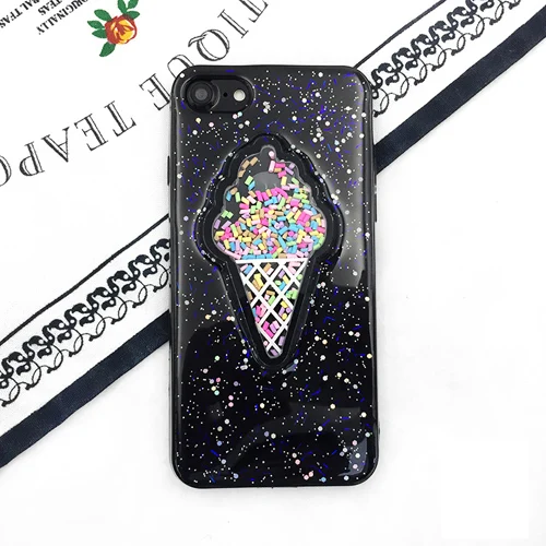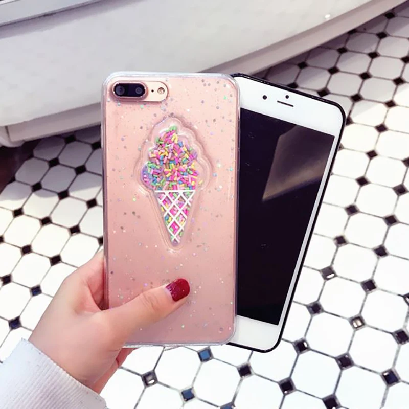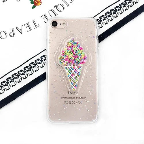 Features:Glitter Powder Heart Love Ice Cream & Macaron Soft Case