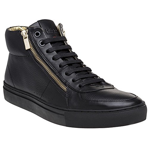 Product DescriptionThe men's Futurism Tenn hi-top trainers by HUGO are sleek styling in black leather uppers with tonal laces and brushed gold eyelets and a luxury gold zip detail for a contemporary designer finish.0