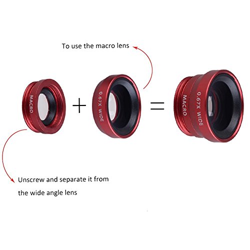 - Wide angle and macro lenses in a 2 in 1 set: these two small lenses are screwed together for easy storage. To use the wide angle, simply attach both lenses to the clip provided. To use the macro lens, simply unscrew the wide angle lens.