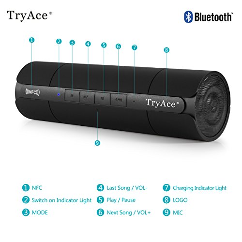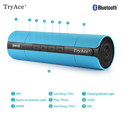 -. Binding : Wireless Phone Accessory -. Brand : TryAce -. Feature : Advanced audio performance delivers full-range listening experience, / Pairing is easy-- Tap your phone with bluetooth and create an instant connection / Two highly powerful 40mml total 6W acoustic drivers and ultra-small size produce a wide audio spectrum / Built-in microphone On this Portable Wireless Bluetooth Speaker works for hands-free phone calls for Apple iPhone iPad iPod MacBook Samsung Galaxy s4 and s3 Galaxy Note Amazon Kindle Fire HD HTC Droid and One S Nexus 7 Nexus 4 and all mobile cell phone laptop computer and car. / Built-in Li-Ion Rechargeable Battery for up to 10 hours of playtime. Built-in microphone for hands-free speaker phone calling Easy to pair - No code/pin needed -. Label : TryAce® -. Manufacturer : TryAce® -. PackageQuantity : 1 -. ProductGroup : Wireless -. ProductTypeName : WIRELESS_ACCESSORY -. Publisher : TryAce® -. Studio : TryAce® -. Title : TryAce® Portable Boombox NFC Wireless Bluetooth Speaker, Ultra Bass Booster/Power Crystal-Clear Sound/Subwoofer Sound Effect/Built in Mic for Calls and Rechargeable Battery for iPhone/iPad/iPad Air/All Phones/Samsung Galaxy Phones and Tablets/Laptop/PC.