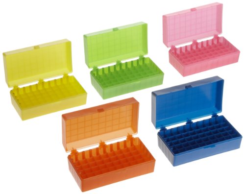 Heathrow Scientific HS120033 50 Well Microtube Storage Box, Cryogenic Box, Tube Storage, 1.5mL/2.0mL Tubes,Polypropylene, 5 Assorted Colors, (5/pk)