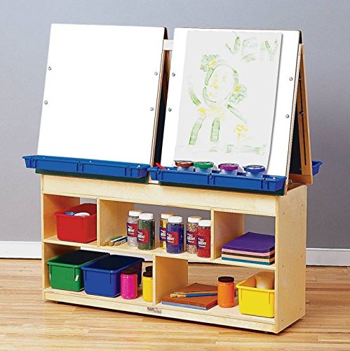 -. Binding : Misc. -. Brand : Bird In Hand -. Color : Natural Wood Tone -. EAN : 0885634276201 -. Feature : Removable trays for easy cleaning / Large easel center with four easels and shelf space / Sold as an Each / Plenty of room for art materials on the shelves below easels / Made with birch veneer for a beautiful appearance -. IsAdultProduct : 0 -. Label : School Specialty -. Manufacturer : School Specialty -. Model : 271543 -. MPN : 271543 -. NumberOfItems : 1 -. PackageQuantity : 1 -. PartNumber : 271543 -. ProductGroup : BISS -. ProductTypeName : TEACHING_EQUIPMENT -. Publisher : School Specialty -. Studio : School Specialty -. Title : Bird in Hand 271543 4-Person Easel Center with Storage, 49-7/8" x 13" x 49-5/8", Natural Wood Tone -. UPC : 885634276201