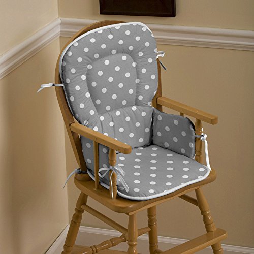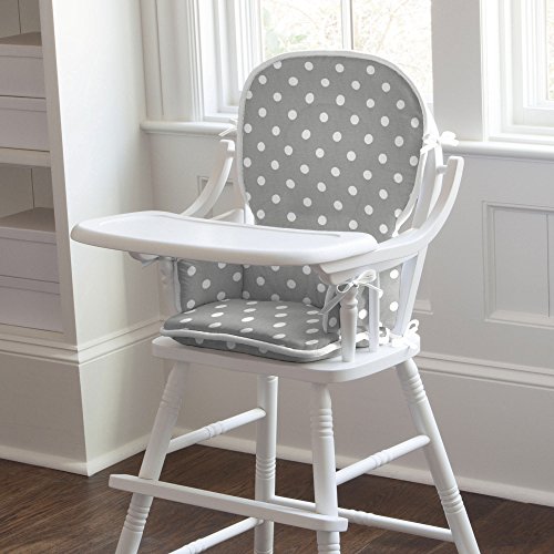 Studio : Carousel Designs Publisher : Carousel Designs Binding : Baby Product Product Description Body of high chair pad is in Gray and White Polka Dot, with Solid Antique White trim and Solid Antique White ties. Whether it's food time or fun time, our dual-purpose high chair/child rocking chair pads are just right! Includes two pads. Top pad is 18" tall by 15" wide, bottom pad is 13" wide by 12" deep (attached arm section is 6" x 8"). Our high chair pad batting is made from recyclable hypoallergenic polyester fiberfill. 0
