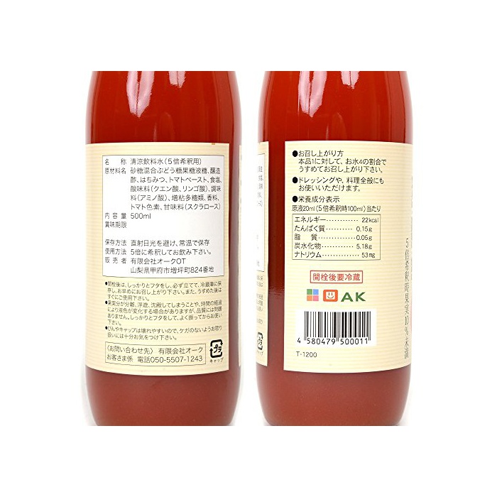 상품명:토마토를 사용했 마시는 식초【500ml×1개】【유통기한:2019/1/24】