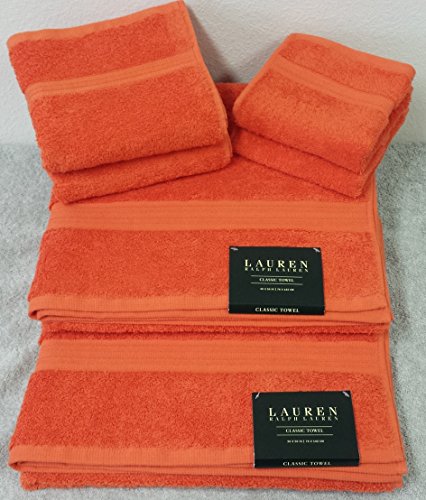 RALPH LAUREN CLASSIC 6 PIECE BATH TOWEL SET - 100% COTTON - ORANGE