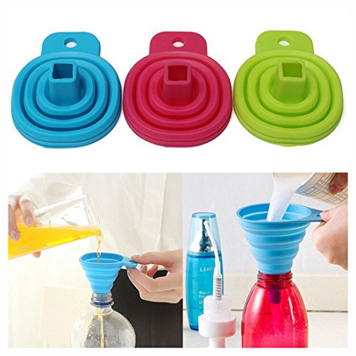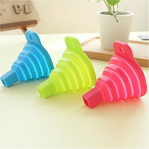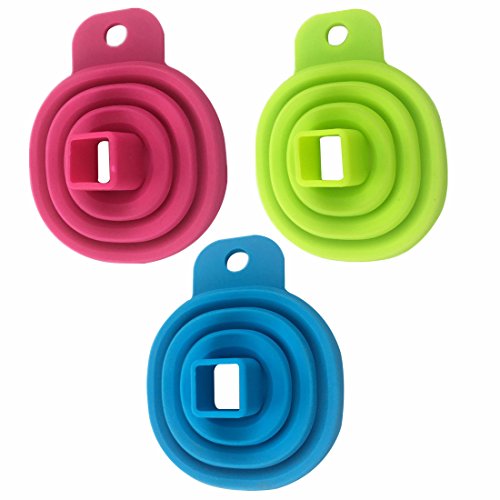 Silicone Collapsible Funnel Foldable Funnel for Liquid Transfer 100% Food Grade Silicone (3Pcs Green, Blue, Pink)