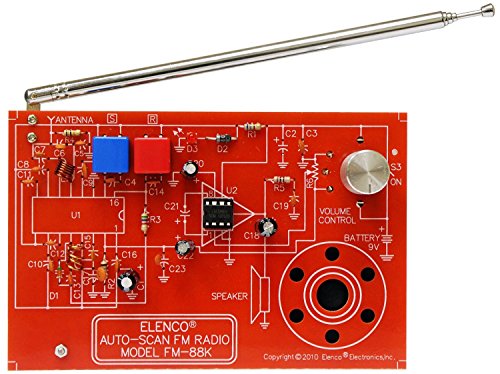 -. Feature : Build this kit to assemble a monophonic FM receiver (88-108mhz) with electronic auto-scan / Will help you understand the basics of working with P.R.Inted circuit boards / Become familiar with a variety of electronic components / Develop good soldering skills / For 30 years Elenco has been using their strong engineering and design skills to develop reliable, affordable electronic test equipment, tools, and educational kits