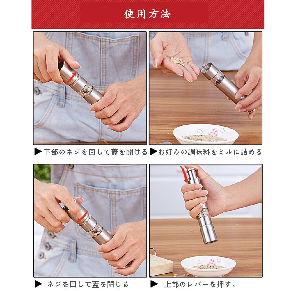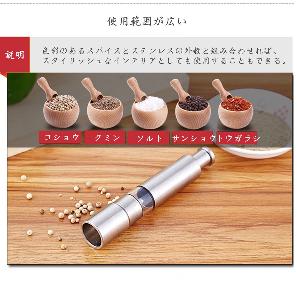 One push with one hand A black pepper and a rock salt are also a manual mill. In the middle of cooking, you can use it easily while holding a frying pet. Anytime you can eat freshly ground taste