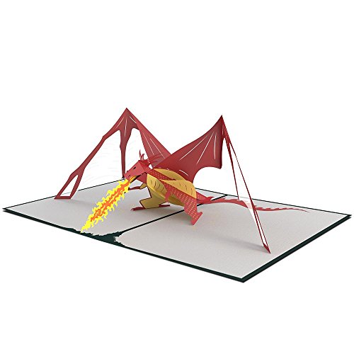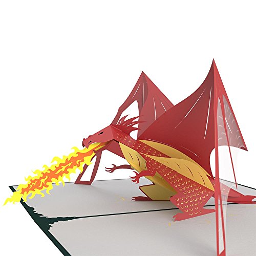Studio : Lovepop Publisher : Lovepop Binding : Office Product Product Description The hunter green cover of this fiery pop-up card features a laser-cut dragon egg. Full of spectacular and wonderfully intricate details, the cover hints at the incredible pop-up inside. Inside lives the legendary fire-breathing creature you've all been waiting for. Our 3D dragon pops up and out of the card with an impressive stature you have to see to believe. Seriously, how did Joe get this huge dragon inside of a perfectly folded card? We assume some magic was involved. We are talking dragons after all. This card is blank so let your imagination run wild with uses for this pop-up. Give it to your friend who is a tab too obsessed with Game of Thrones. Or send the dragon to that friend who is constantly getting roasted by the squad. Also, a nice (anonymous) way to tell someone to do something about that dragon breath. Perfect for birthdays and when you need to say sorry for being a little tough to deal with or for accidentally setting fire to something you shouldn't have. Truly, the possibilities are endless. The Dragon Pop-up Card is 5 inches wide by 7 inches tall and comes with an embossed Lovepop envelope. 0
