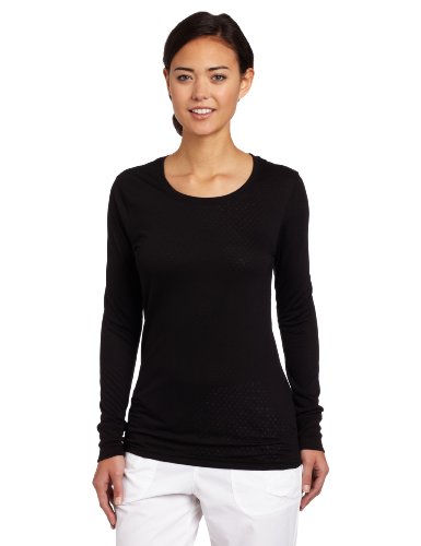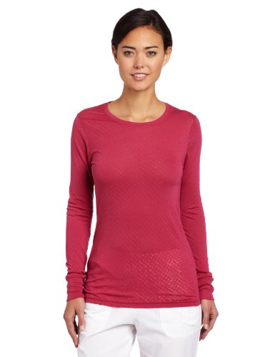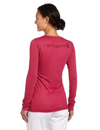 Women's long sleeve burnout jersey, round neck styling, rib knit at cuff and neckline, carat logo screen print at upper back of garment, 65 percent polyester/35 percent rayonFeature