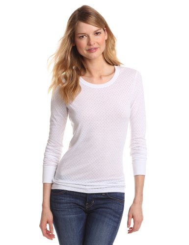 Long-sleeve burnout tee with scoop neckline featuring ribbed cuffs