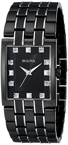 -. Binding : Watch -. Brand : Bulova -. Color : black -. Department : mens -. EAN : 0042429459113 -. Feature : Due to a recent redesign by Bulova, recently manufactured Bulova watches, including all watches sold and shipped by Amazon, will not feature the Bulova tuning fork logo on the watch face. / Curved mineral crystal with silver metalized rim; faceted dauphine hands / Stainless steel case and bracelet / Total 8 diamonds, black IP case and bracelet; moisture resistant / Men's diamond dial bracelet watch black dial -. Label : Bulova -. Manufacturer : Bulova -. Model : 98D111 -. MPN : 98D111 -. PackageQuantity : 1 -. PartNumber : 98D111 -. ProductGroup : Watch -. ProductTypeName : WATCH -. Publisher : Bulova -. Studio : Bulova -. Title : Bulova Men's 98D111 Bracelet Black Dial Watch -. UPC : 042429459113