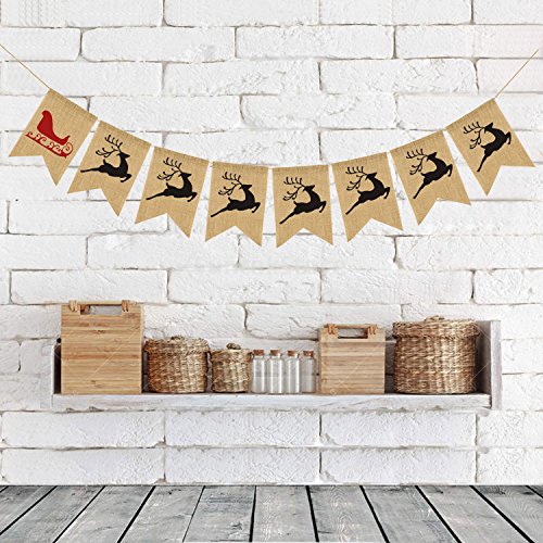 (Rainlemon)/Stationery Party Supplies/Party Supplies/DIRECT FROM USA/Vintage Burlap Merry Christmas Banner Elk Party Wall Fireplace Decoration