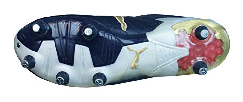 Binding : Apparel Product Description Puma V Konstrukt II SG Mens Leather Football Boots / Cleats - The V-Konstrukt II Football Boot is the perfect combination of comfort and aggressive protection in a fresh new design. The Ball impact Guard creates a visually striking element on the Football boots whilst providing maximal protection to the foot. Together with the premium full grain leather and the PUMA AptoLast an unique glove like fit is generated. The combination of the finger shaped external heel counter and the new dual density EVA creates a snug protective fit around the heel whilst the DuoCELL unit provides optimal cushioning when running. The Upper is made from supersoft premium full grain leather with a soft microfiber ankle lining. Off centre lacing. Microfiber Inlay with Lycra backing. TPU injected external heel counter with double-density EVA elements. Foldover tongue. Lightweight TPU injected outsole with integrated heel unit. DuoCELL in the heel. DuoFlex technology. Metal tipped conical studs. Suitable for use on soft natural surfaces. 0