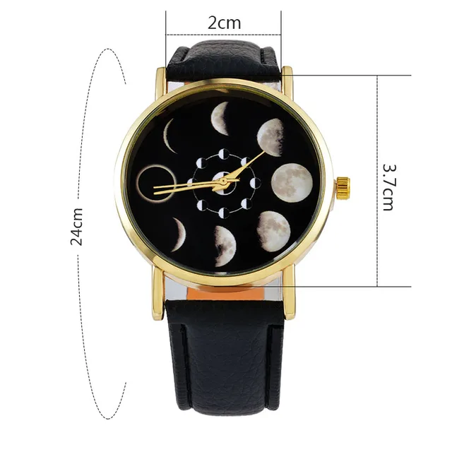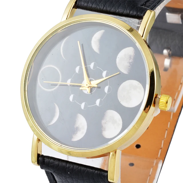 | [해외] 태양 달 상 음력 이클립스 시계 여성 세련된 쿼츠 시계 가죽 팔찌 시계 여성 시계 시간 Relogio masculino |