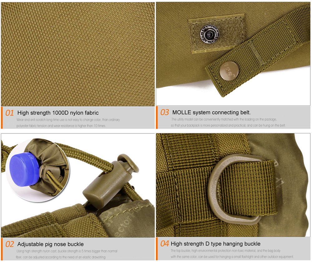 MOLLE system: With MOLLE compatible belt and strap, it is convenient to carry!