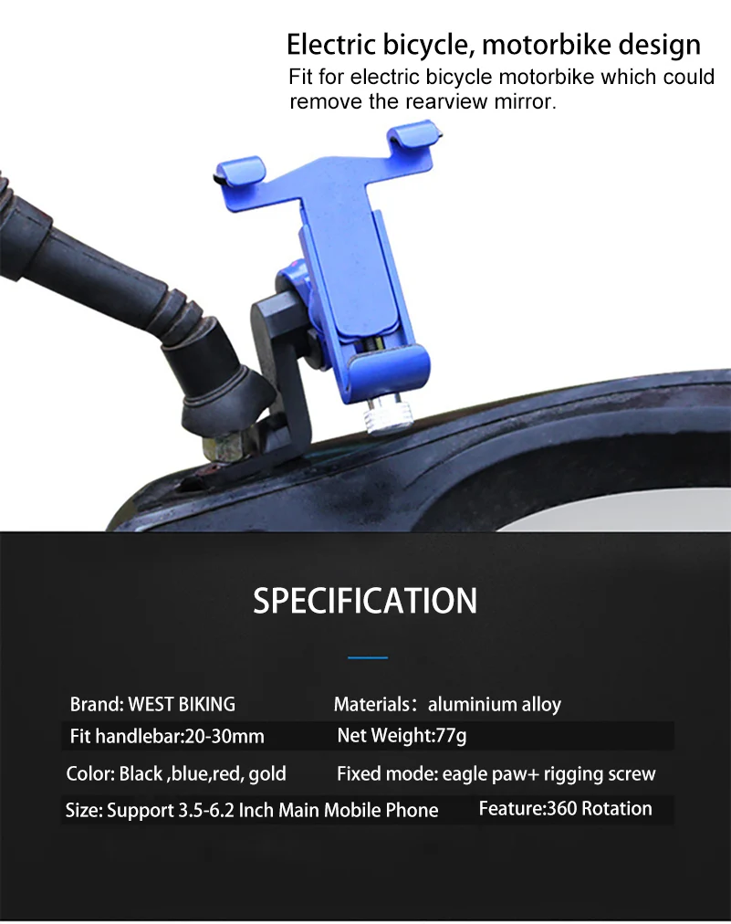 Bicycle Phone Holder Size:Support 3.5-6.2 Inch Main Mobile Phone