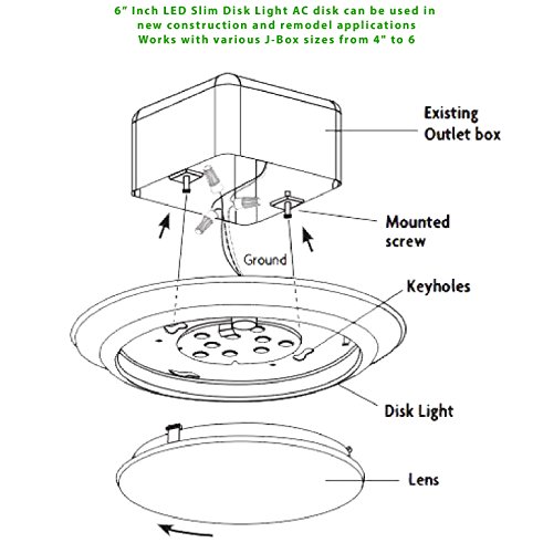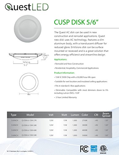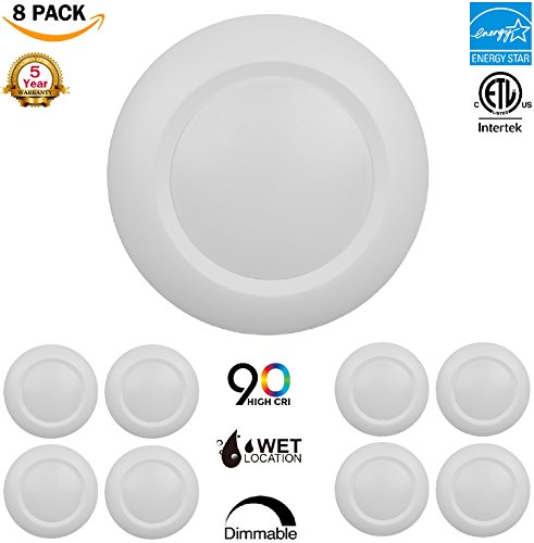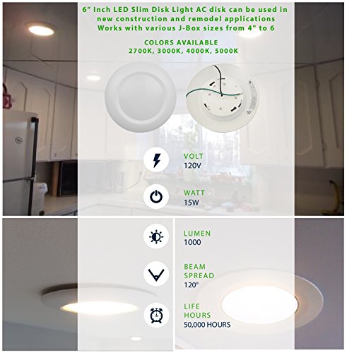 LED 5/6" Inch Slim Disk Light Flush Mount with 4" 3” J-box AC Technology 15W (100W Equivalent) 1000 Lumens; Dimmable; 120V; CRI>90; Beam Spread 120; ETL; Energy Star; JA8; Day Light 5000k- (8 PACK)