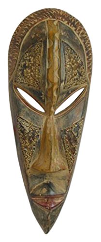 NOVICA Decorative Large Sese Wood and Brass Mask, Beige, 'Successful Leader'