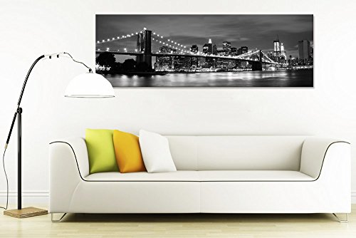 -. Title : Large Size 20"x60" Modern Canvas Wall Art,New York Cityscape Brilliant Brooklyn Bridge Canvas P.R.Ints,Black and White,Home Office Wall Fresh Use