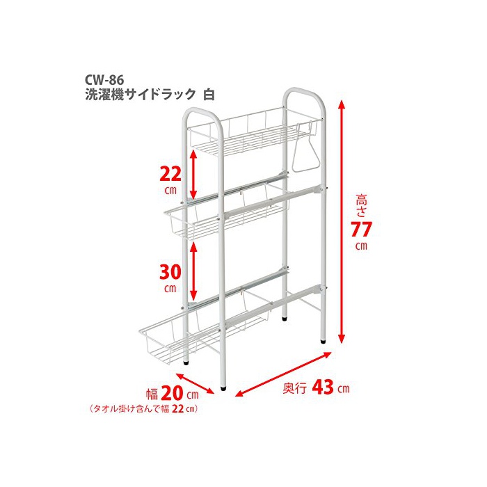 원본상품명: 平安伸銅工業 洗濯機サイドラック ホワイト アジャスタ?付き(調整範?:高さ2cmまで) 幅20cm 高さ77cm ?行43cm CW-86