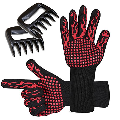 Prumya BBQ Gloves and Meat Shredder Claws Set, Heat Resistant Grilling Cooking Gloves Oven Mitts & Pulled Pork Claws, Home kitchen Accessories BBQ Tool for Outdoor and Indoor Use