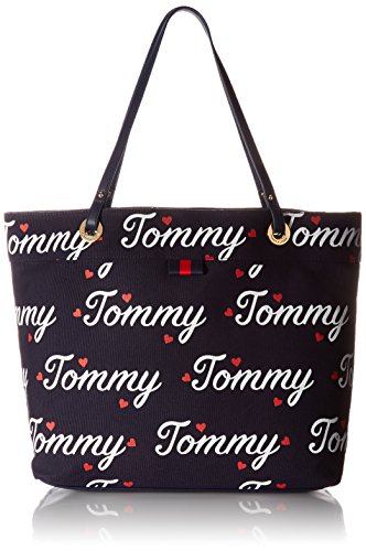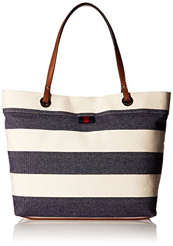 Tommy Hilfiger Canvas Tote Bag for Women Grommet, Navy/Red