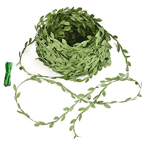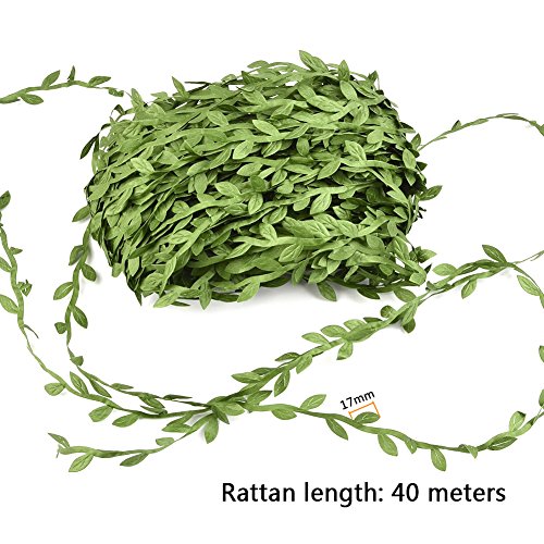 ATPWONZ Artificial Green Leaf Cloth Green Leaves Rattan Leaves Wreath Accessories Fake Vine Leaf for Decoration(40m) /with 50 Packs Iron Ribbon