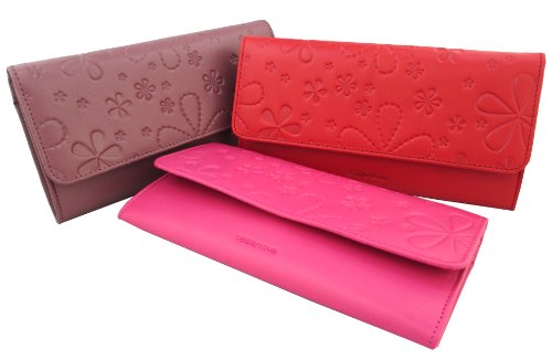 - Title : KissMe Collection - Women's Soft Leather Purse Organizer Long Wallet Clutch Card Holder - Embossed Floral Design - Handmade in Spain