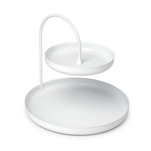 Poiseはあなたに1つだけではなく2つのトレイをあなたのアイテムを保持するために与えることによって垂直収納スペースを利用します。メッキされた金属製で、2つのサイズがあります。Poiseの2層設計は、宝石類の収納やその他の小さなものを安全に整理しておくのに理想的です。