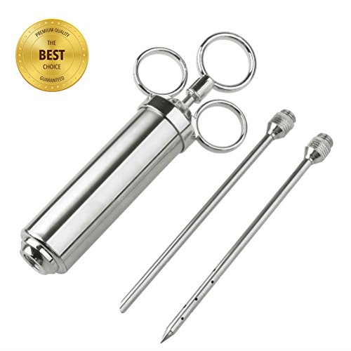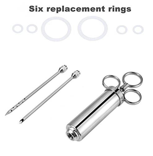 JIAYE Heavy Duty 304 Stainless-Steel Meat Injector 2-oz Large Capacity Barrel with 2 Marinade Needles, 6 Replacement O-rings
