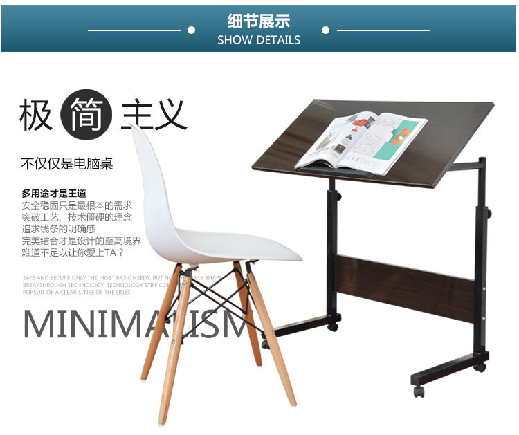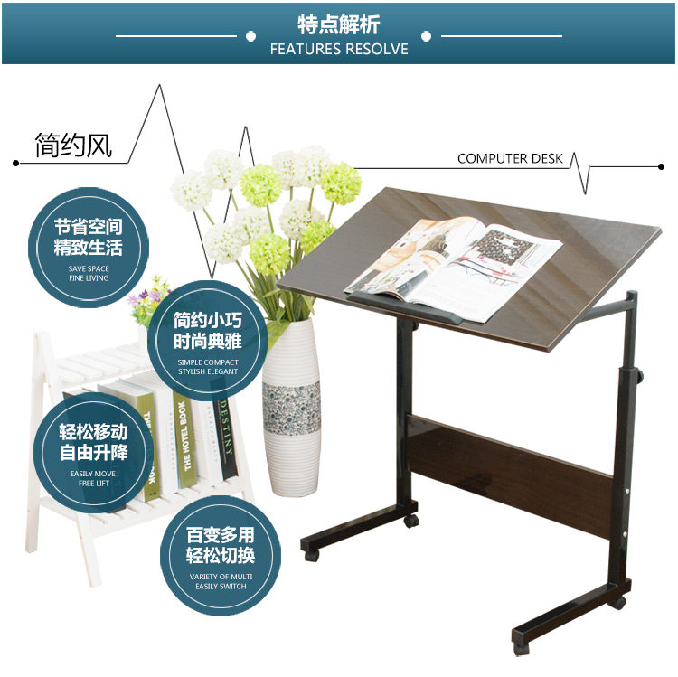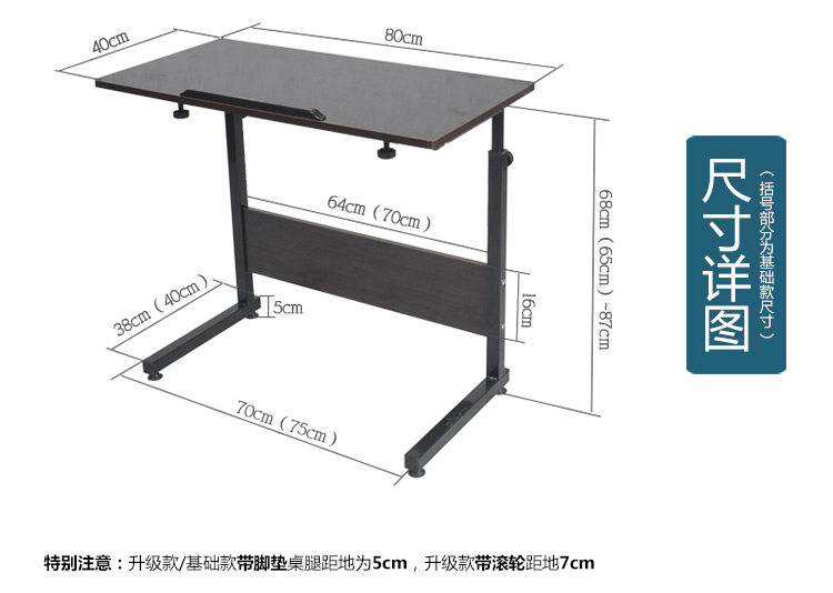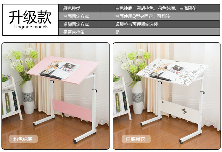 【桌面尺寸】更长更宽高达80x40cm;【多角度】桌面270°可调节【升降自由】高度70-90CM自由调节【坚固】采用30mm方钢管,25mm圆形钢管;【多功能】写字桌,小餐桌,画桌,笔记本电脑桌Desktop size: longer, up to 80 wide x40cm;Multiple perspectives: desktop 270 ° is adjustable.Elevating freedom: adjust freely height 70-70 cm.Solid: using 30 mm square steel tube, 25 mm round steel tube;Multi-function: secretary, small table, drawing table, laptop computer desk.