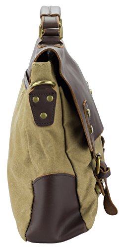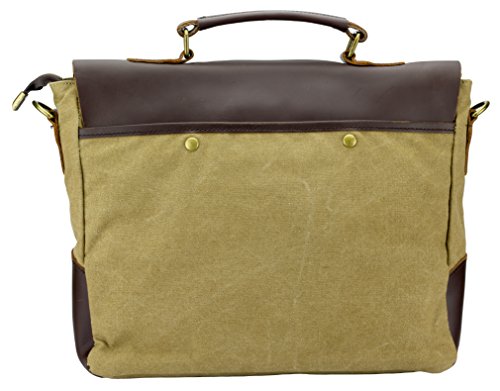 JS Rainbow Cotton Vintage Leather Canvas Business Messenger Bag (Khaki)