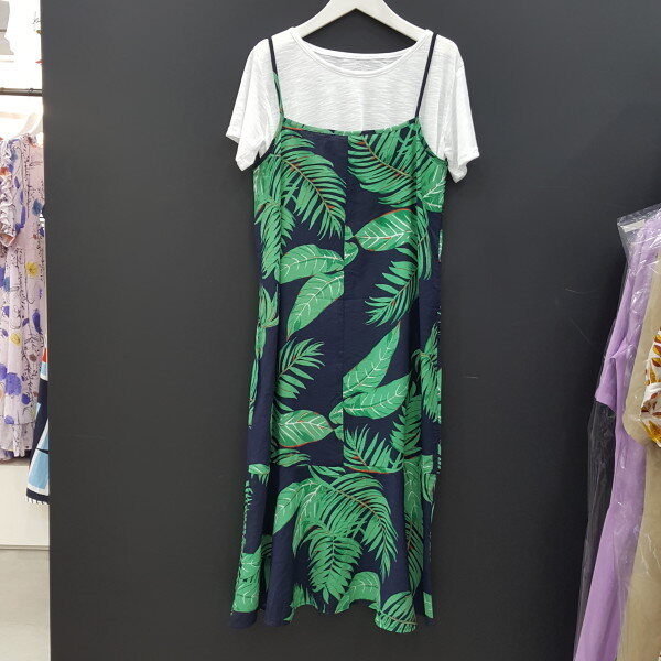 티셔츠와 셋트로 구성된 원피스로 가볍고 시원한 연출이 가능한 스타일입니다프리사이즈 총길이113가슴둘레96