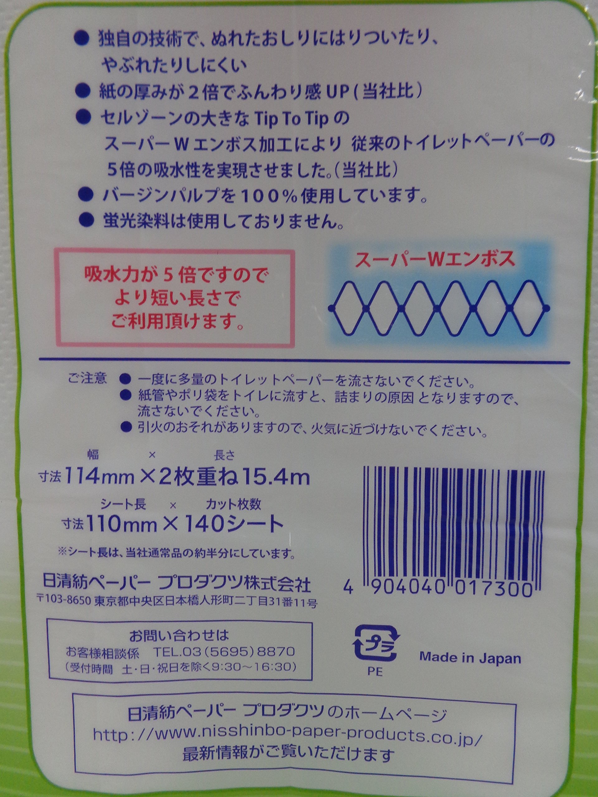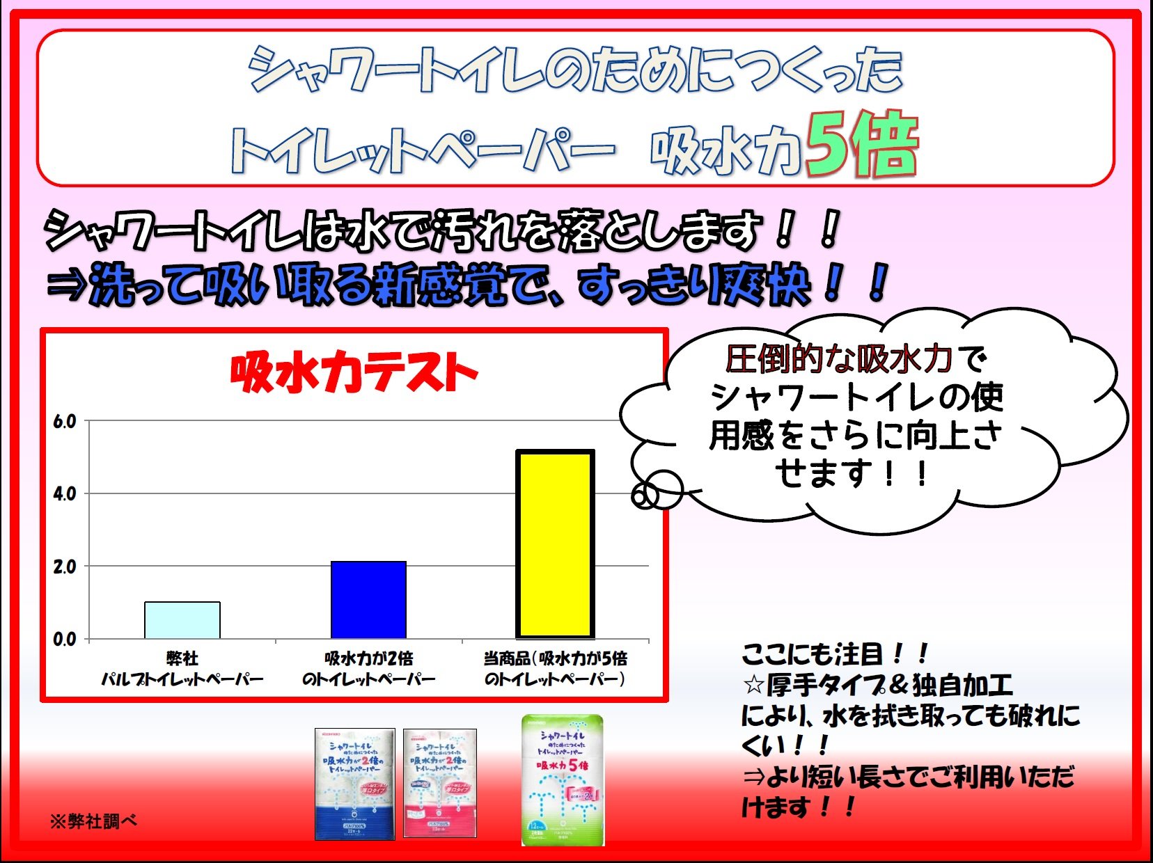 It is about 5 times more water-absorbing than the conventional toilet paper, so it can be used in less amount.