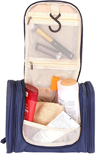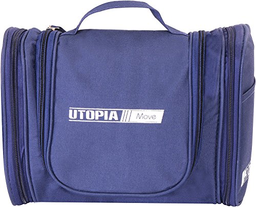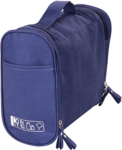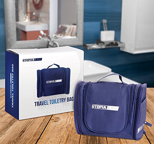 Toiletry Travel Bag (Microfiber, Blue) - for Men and Women - Perfect for Travelling, Vacations or Business Trip - Water Resistant with Mesh Pockets and Strong Hanging Hook Shower Bag- by Utopia Home