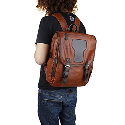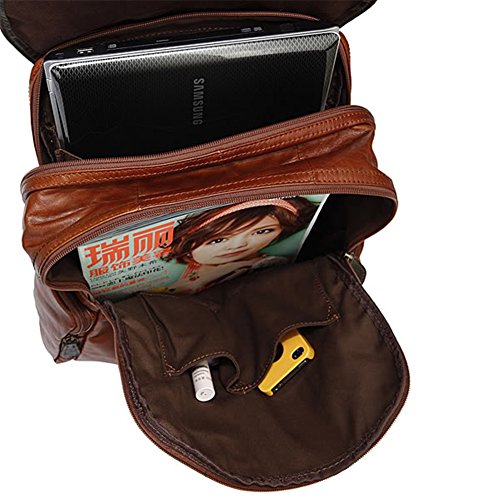-. Title : Baigio Genuine Leather Laptop Backpack College Travel Rucksack