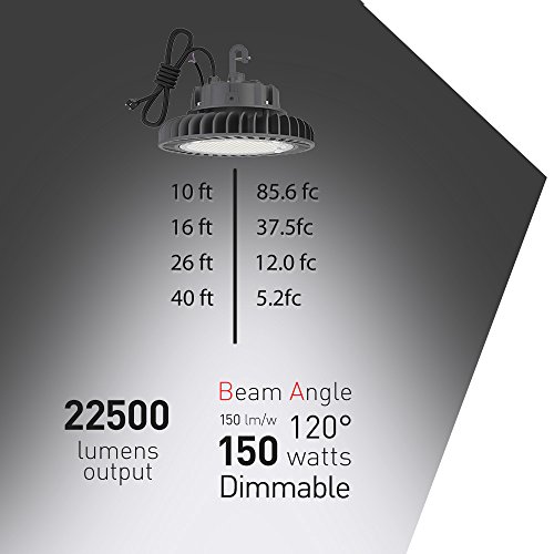 - EXCELLENT LIGHTING PERFORMANCE: 150watt=20,250 lumens, CRI>80, up to 135 lumens to watt, 400 watt HID/HPS Equivalent. Dimmable high bay LED lights Hero series also has 1-10V dimmable function, the beam angle is 120 degree.