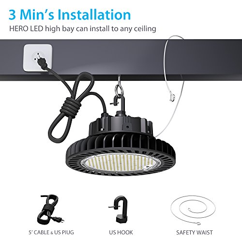 - 3 MINS INSTALLATION: With US hook, US plug, 5’ cable, safety wires, high bay LED lights Hero series make the installation much easier.