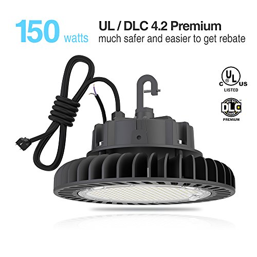 Hyperlite 150W LED Warehouse Light High Bay LED High Bay Light, UL and DLC 4.2 Premium Approved, 5000K, Dimmable, 5'cable with plug, US hook, Acrylic reflector is optional