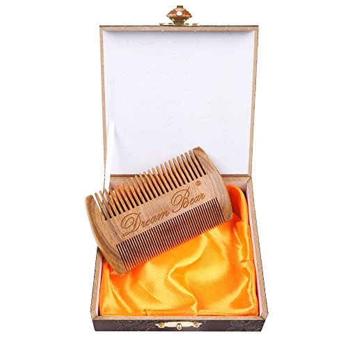 DREAM BEAR® 100%Handmade Green Sandalwood Comb,Double Different Densities Beard Comb,Natural Fragrance,no Static,Use for Mustache & Hair+(perfect Giftbox Packaging).